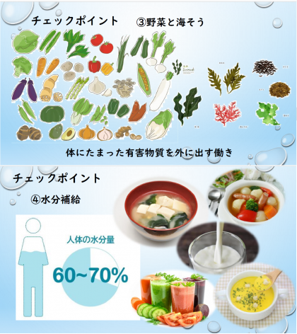 熱中症予防に、また、夏休みを健康に過ごすためにも、日々の生活に活かしてください。