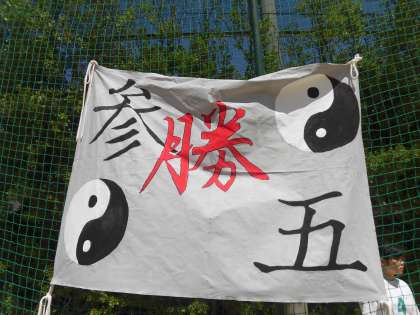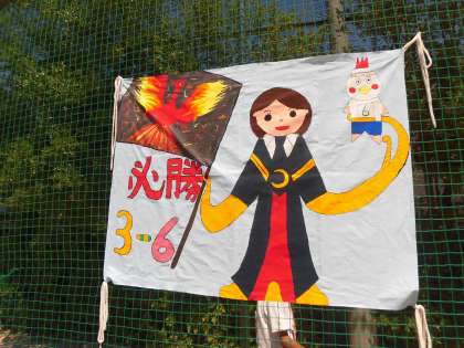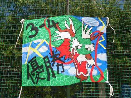 今まで紹介した学級旗は、各クラスの有志が家庭訪問期間中を利用して一生懸命仕上げたものです。どのクラスの旗も体育祭に対する熱い思いと、クラスの団結力が伝わってくるものばかりでした。