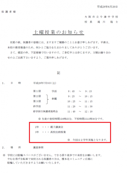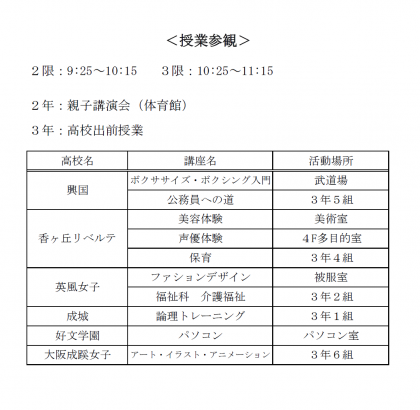 なお、今回は2年生・3年生のみの実施となります。1年生は土曜授業の実施はありませんので、ご注意ください。