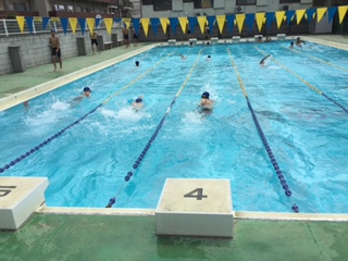 暑い日が続いています。体育の授業は水泳が始まっています。写真は2年生男子の授業の様子です。みんな元気いっぱい。気持ちよさそうですね!