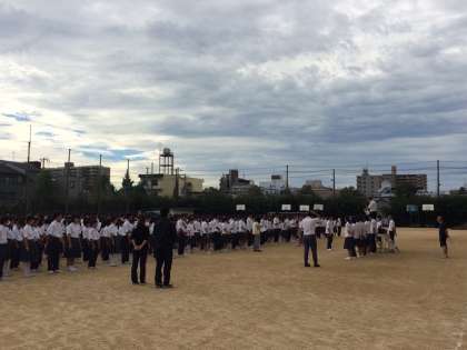本日午前11時に大阪800万人訓練があります。今年は、南海トラフ地震発生による訓練です。前もって、地震が起こったらどうするのかしっかり考えておき、緊急放送があればそれを実行に移せるようにしておきましょう。日本では災害が多発しています。必ずいつかは自分の身にも起こると思って間違いではありません。自分の命は自分で守るというのが大原則です。今回の訓練に真剣に取り組むようにしましょう。」