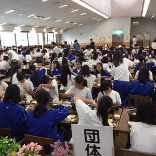 全員で「いただきます。」メニューは牛鍋定食。男子のご飯のおかわりがすごかった。