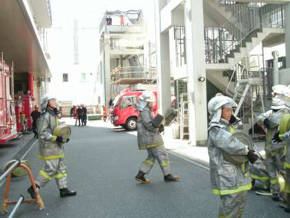 初日はビデオによる講習を受け、2日目は実際に訓練に参加しました。本物の防護服も着させてもらいました。