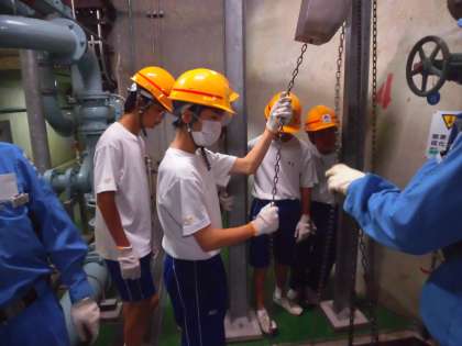 水質チェックの仕方や、水の浄化方法などについて勉強させていただき、普段見ることのできない施設の裏側も見せていただきました。