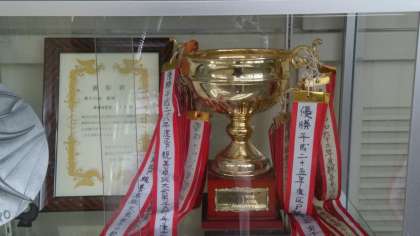 職員室の並びの和室前に、優勝カップと賞状を飾っています。ご来校の際に是非ご覧になってください。