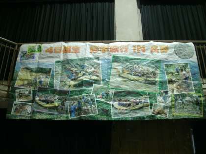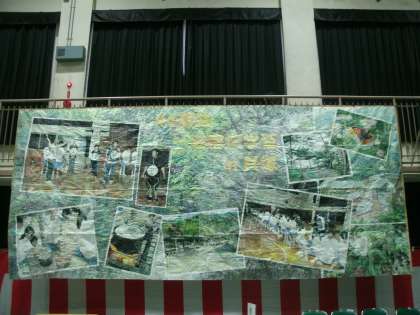 こちらは1年時の一泊移住と修学旅行の思い出を描いたモザイクアートです。
