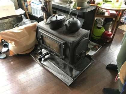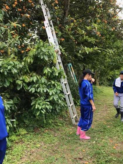 体験12 平野さん宅。6組女子。125年前からのお家です。写真はおくどさん?庭では枇杷取りをしました。今年は豊作です。