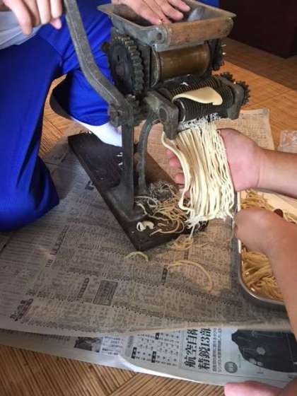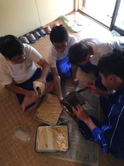 体験14 中山さん宅。2組男子。お昼ご飯のうどん作りをしています。