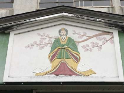 安心院は鏝絵が有名です。あちこちの民家の上に飾られています。