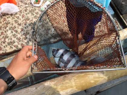 3-5女子がお世話になっている椛田さん宅では早朝より漁に出ました。小さい魚と石鯛を釣りました。
