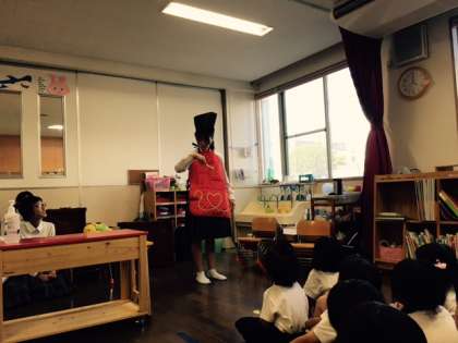 大型紙芝居やエプロンシアターに園児達は大喜び。