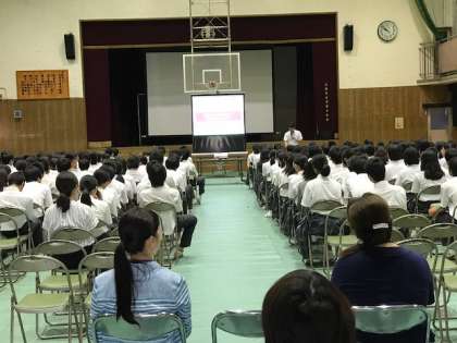 蒸し暑い体育館の中でしたが、的場先生のお話が素晴らしかったので、生徒たちは集中して聴いていました。