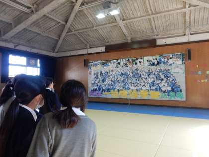 9月からコツコツ取り組んできたモザイク画ですが、1年の生徒たちは、貼り合わせて完成した状態を10月27日の文化活動発表会で初めて目にしました。
