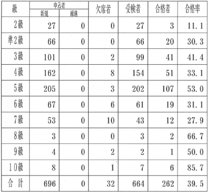 平成29年度 第2回 日本漢字能力検定 結果