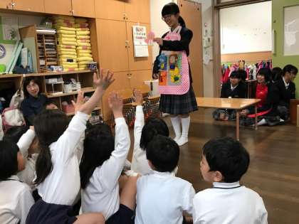 文芸部は3月19日(月)、にじの木保育園の3・4・5歳児に今年度最後の読み語りをしました。定番の、腹ぺこあおむし、へんしんトンネルに新ネタのエプロンシアターなど、多彩な読み語りに園児たちは大喜びでした。