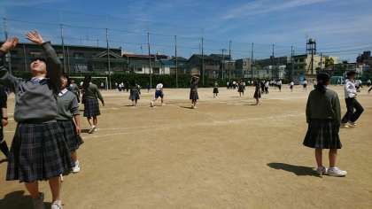 バレーボールで円になって続けたり、3対3でラリーをしたり