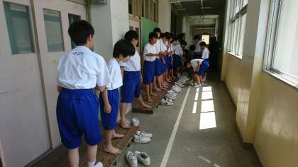 昨日の心臓検診・・・クツを並べて静かに検診を受けていました。