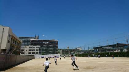 いつものお昼休み、暑い中、たくさんの生徒が遊んでいます!