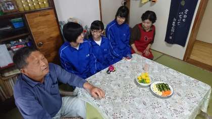 お手玉作り、昼からはタケノコ料理のお手伝いします。