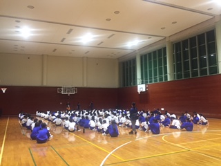 キャンプファイヤー後は、体育館に集まってパンとジュースの捕食をとり、各部屋に戻って健康観察や就寝準備をします。