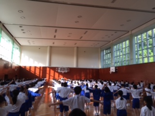 朝の集いとラジオ体操です。