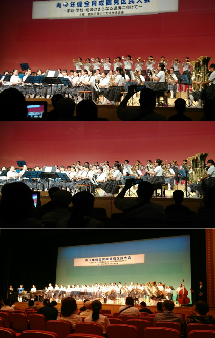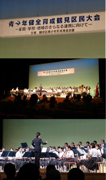 日曜日、暑い中、吹奏楽部は鶴見区の青少年健全育成大会