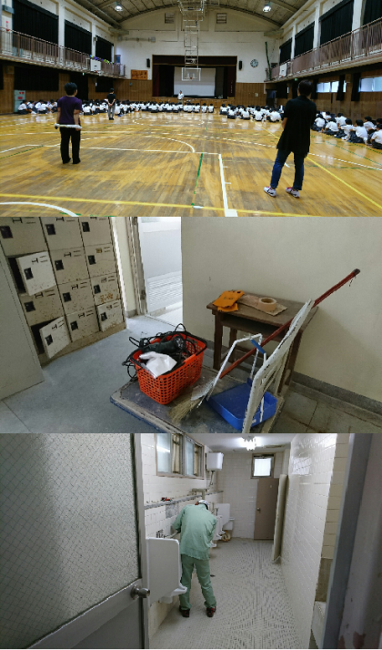 体育館の男子トイレのタイルを丁寧に直してくださって