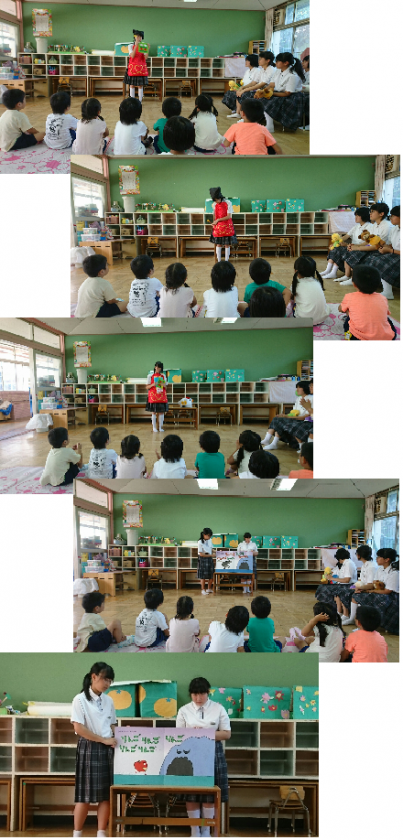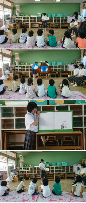 子どもたちは熱心に、お姉さんたちの読み聞かせを