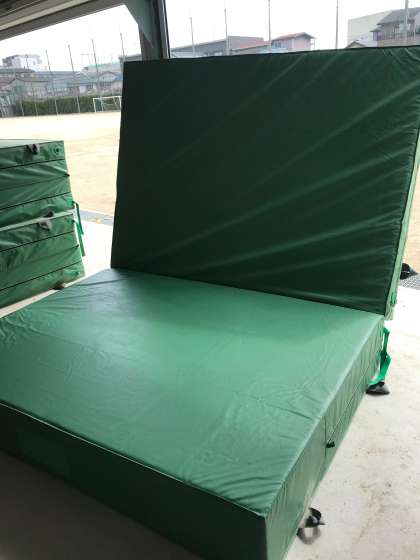 2つ折りウレタンマットで体育科学習「高跳び」や陸上部で使用します。