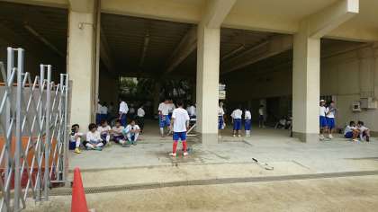 して水泳の活動を中止し下校を促し、体育館でのバレー