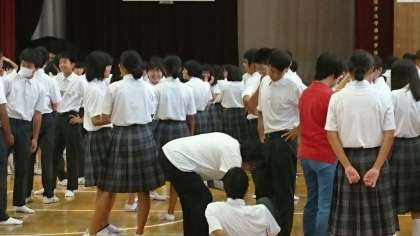 27日(月)の始業式を前に服装点検や、健康チェック、