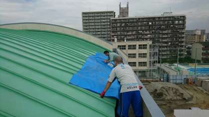 2度に及ぶ台風に、悲鳴を上げた体育館の屋根。