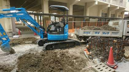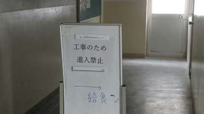 給食棟の工事の関係で本日(17日)より今週いっぱい校舎から
