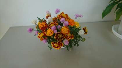 いつも管理作業員さんが学校に咲いている花で花かごを作って