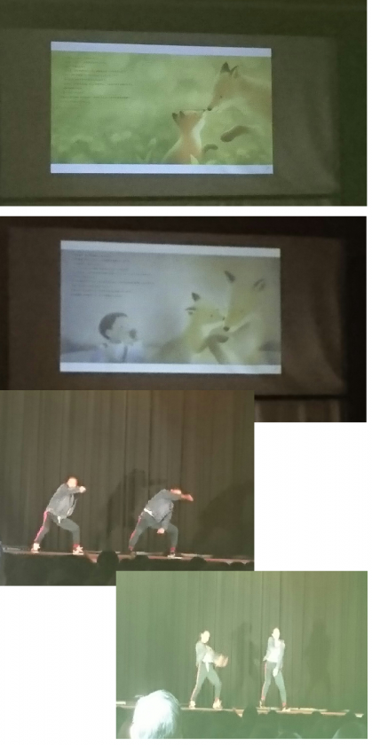 1年1組、2年5組、3年2組と披露しました。講堂いっぱいに
