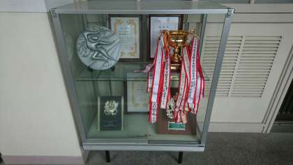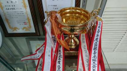 そして、和室前にある陳列棚にはPTA卓球大会の準優勝カップ