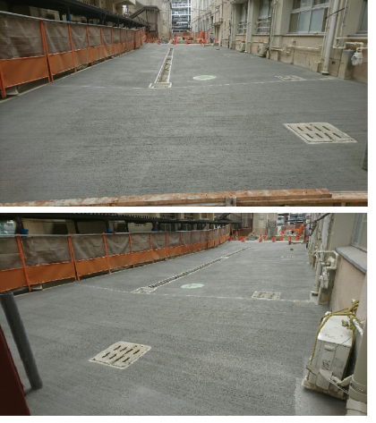 給食棟の建設に伴い、食品運搬のための道路となった現在の