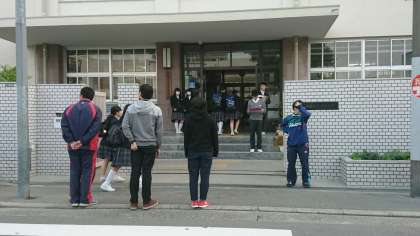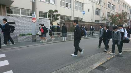 マスク姿、マフラー着用、ブレザー着用とだんだんと冬仕様
