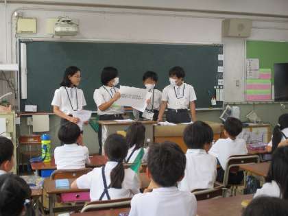 9月26日(金)13:00〜、2年生8名が「歯みがき教え隊」として今津小学校を訪問し、小学3年生に向けて「歯と口の出前講座」を行いました。