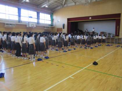 全員合唱の練習後、コンクール当日の体形、入退場などについて確認をしました。全員がおちついた態度で取り組むことができていました。