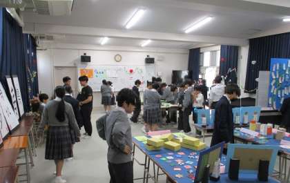 すべての生徒が、学年・学級の全員が力を合わせて作った作品や教科・部活動で作成した力作をゆっくりと鑑賞していました。