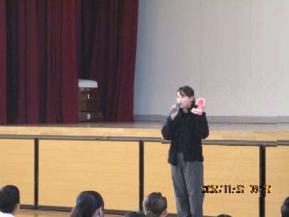 また、学年集会では養護教諭による講話(画像下)が行われました。 中学生の時期は、むし歯や歯肉炎になりやすいこと、歯みがきのポイント、そしてスポーツドリンクの飲み方について、お話がありました。 日々の生活の中で、健康を意識するきっかけになればと思います