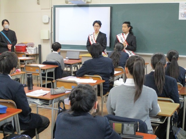 2月16日(月)6限、大阪市鶴見区住みます芸人をお招きし、2年生対象に、キャリア教育の一環として、笑育(わらいく)を実施しました。