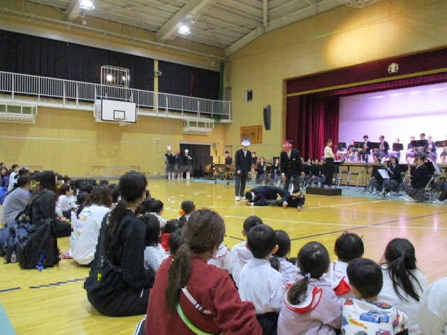 アンパンマンも登場し、知っている曲もたくさんあり、かわいい幼児、園児のみなさんは、吹奏楽部の演奏、演技を夢中になって鑑賞していました。