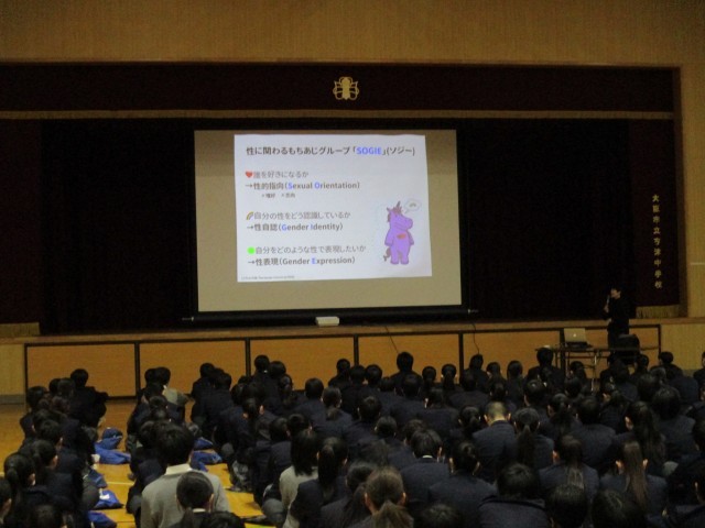 講師の先生をお招きし、2年性教育・人権教育として、ソジー(SOGIE/性の多様性)について、講演をしていただきました。