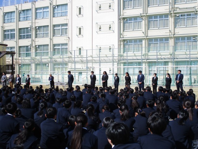4月8日(水)新年度の始業式が行われました。新転任の先生方の紹介や担任・副担任の紹介などを行い、校長先生からお話がありました。その後、新入生と在校生の対面式が行われました。
