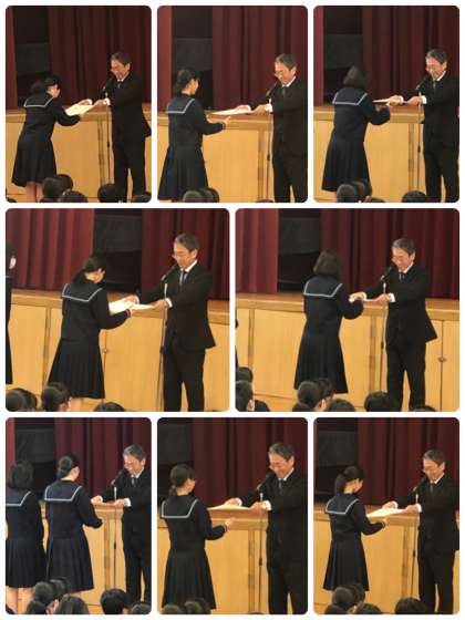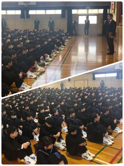 各学年教職員の紹介、春休みの部活動の表彰が行われました。