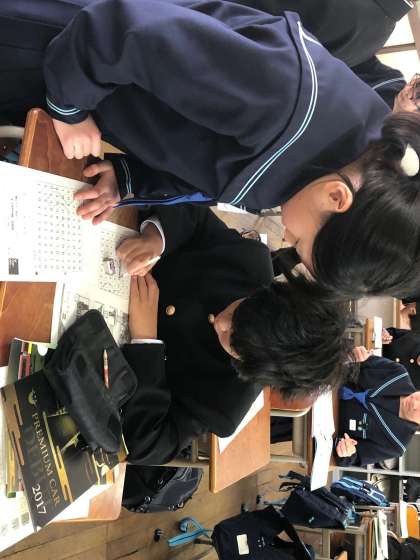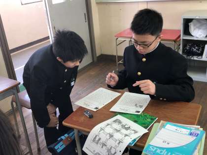1年生の英語の授業では、ペアワークを取り入れて学習を行っています。