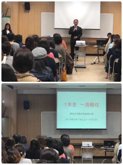 本日、5月11日〜12日に実施します1年生一泊移住についての保護者説明会を行っています。