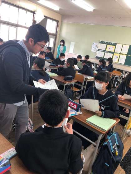 1年生の英語の授業では、C-NETケビン先生と話すことの学習を行っています。